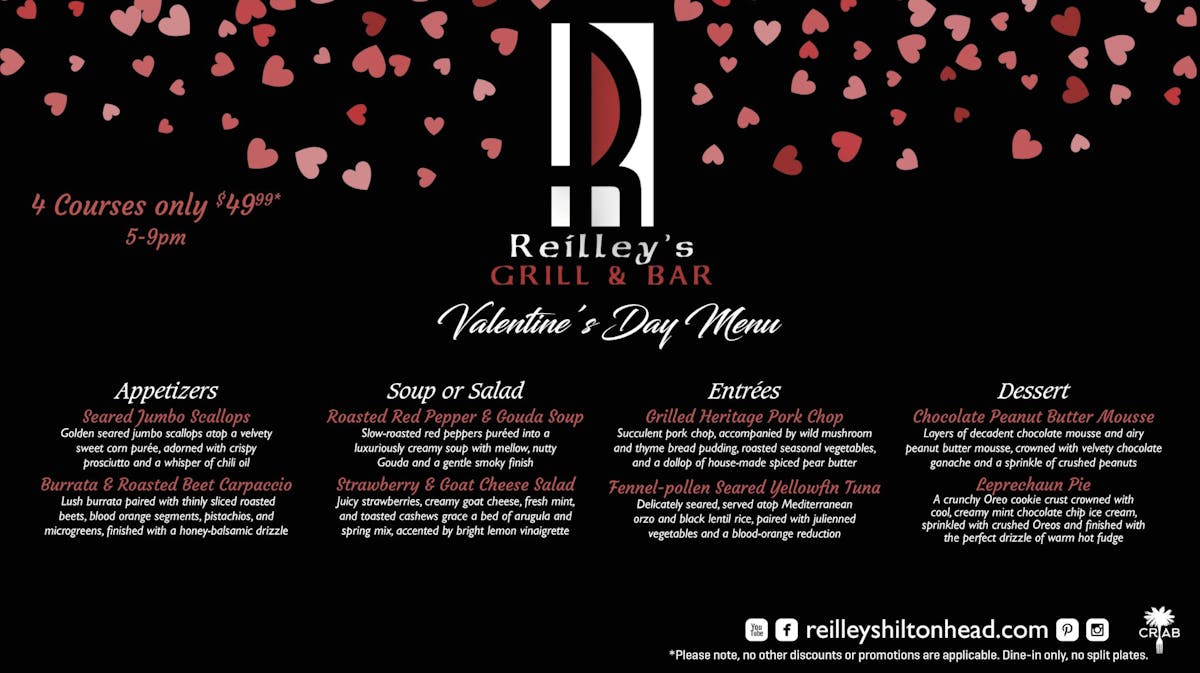 Valentine's at Reilley's Grill and Bar February 14, 2026 until February 14, 2026 Make your Valentine's reservations at Reilley's ❤️